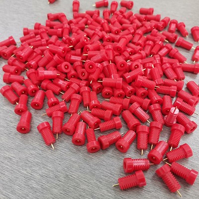 DIN42802 Jacks, panel mount, 1.5mm shrouded male with thread, includes nut, set of 10, rounded edge