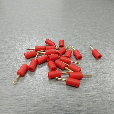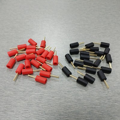 Adapter 2mm Pin to DIN 1.5mm Touch-Proof (TP) Male Connector (pin with safety protection enclosure). 5 pieces per pack. Available in colors black and red.