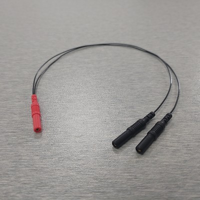 This Y-Cable splitter cable splits 1x 1.5mm touch-proof (TP) female into 2x 1.5mm touch-proof (TP) female.