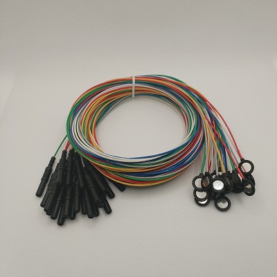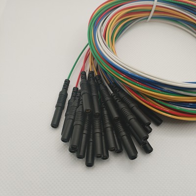 The attached connection cable is 145cm and terminates in a DIN 1.5mm touch-proof (TP) sockets (female connector). The cable jacket is made of TPU enhacing insulation, flexibility, durability, and biocompatibility, ensuring safe and reliable use in research environments.